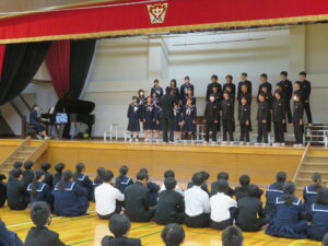 10月22日(水)5時間目に合唱祭に向けてリハーサルを行いました。学年の仲間に聴いてもらうのが初めてだったため、緊張している生徒もいましたが、これまでの練習の成果を発揮していました。リハーサル後に、音楽科の先生から講評とアドバイスがありました。本番まで残り少ないですが、これからのクラス練習に生かしてほしいです。