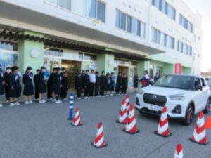 10月23日(木)、自転車安全運転講習を実施しました。講習では、自転車の交通ルールや、安全な運転方法を学びました。また、VR機器を用いた「ながら運転」や、自動車の運転席に座って死角を体験する活動を通して、自分たちの日常に潜む危険性について再確認しました。生徒たちは、命を守ることの大切さを改めて感じていました。