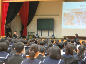 12月2日(火)、防災講演会が行われました。講師に糸日谷美奈子さんをお招きし、「助けられる人から助ける人へ」という題目で、お話を拝聴しました。