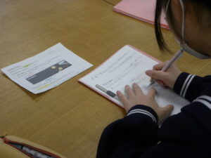 図書委員会は、生徒がいろいろな本と出会えるよう「読書ビンゴ」のイベントを準備しています。ビンゴカードには、各図書委員が考えたクイズを取り入れたり、景品として美術部所属の図書委員がデザインしたしおりを準備したりしています。