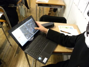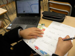 授業では、京都市内の歴史・文化スポットや行き方等について調べました。