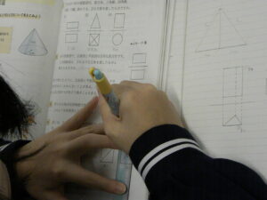 2026年1月30日 / 最終更新日時 : 2026年2月20日 3Gakunen R7-1学年ブログ 1学年 数学科「立体の投影図」 立体を正面から見た図(立面図)や、真上から見た図(平面図)について学習しました。 生徒は、立体の辺・面の形・高さ等に着目して図を描いたり、図から情報を読み取ったりしていました。