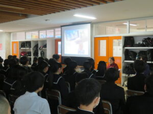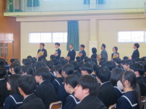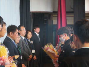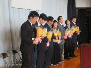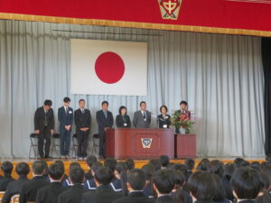 転退職される方々の挨拶と、代表生徒からの手紙と花束の贈呈がありました。式の最後には、お世話になった方々との別れを惜しむように、心を込めて校歌を歌いました。