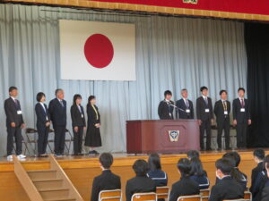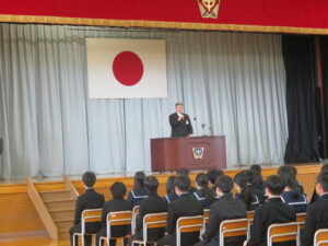 学校長の式辞では、進級にあたり、それぞれの学年で意識してほしいことを具体的に述べられました。