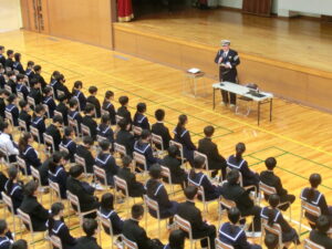 また、4限目には、魚津警察署及び魚津市交通センターから講師をお招きし、交通安全教室がありました。