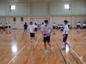 男女ともに、ドッジボールとドッジビーをしました。ボールとフリスビーの2つを使用して試合をしました。途中、先生方も参加し、3学年が1つになった活動になりました。生徒たちは終始笑顔で活動していました。