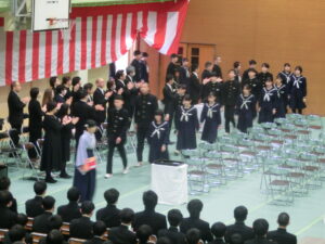 167名の生徒が、本日、巣立っていきました。卒業生の晴れ晴れとした姿、在校生の真剣に取り組む姿は感慨深いものでした。在校生による「勝利の行進」、卒業生による「巣立ちの歌」、合唱を通してそれぞれの思いを伝えました。卒業生が西部中学校で学んだことを生かして、次のステージで活躍することを期待しております。