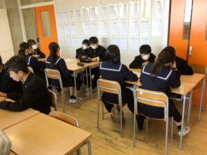 4月10日(水)の学活の時間に、各学級で学級目標を決めました。学級代表を中心にどんなクラスになりたいかをイメージしながら目標を考えていました。それぞれの思いがつまった学級目標が決まったので、その目標を意識しながらよりよい学級をつくりあげてほしいと思います。