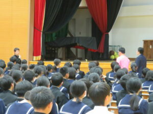 2024年4月19日 / 最終更新日時 : 2024年4月20日 2Gakunen R6-学校行事 いじめ防止教室 4月19日(金)6限、富山法務少年支援センターから講師をお招きしいじめ防止教室が行われました。 いじめは相手を多大に傷つけてしまうこと、日ごろから相手の気持ちを考えることなどお話しされました。また、SNSを通したいじめの事例も紹介されました。今回の教室を通して、一人一人がお互いを認め合い、みんなが安心して中学校生活を送れるようになることを期待しています。