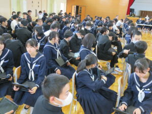 今年度も、議案書をタブレットPCを使用して見るという形をとりました。西部中学校をより良くしようと、執行部や各委員会に向けてたくさんの意見があげられました。討議の際には、一人一人がしっかり考え、活発に意見が出ていました。この総会を通して、素敵な西部中学校を創り上げてほしいと思います。